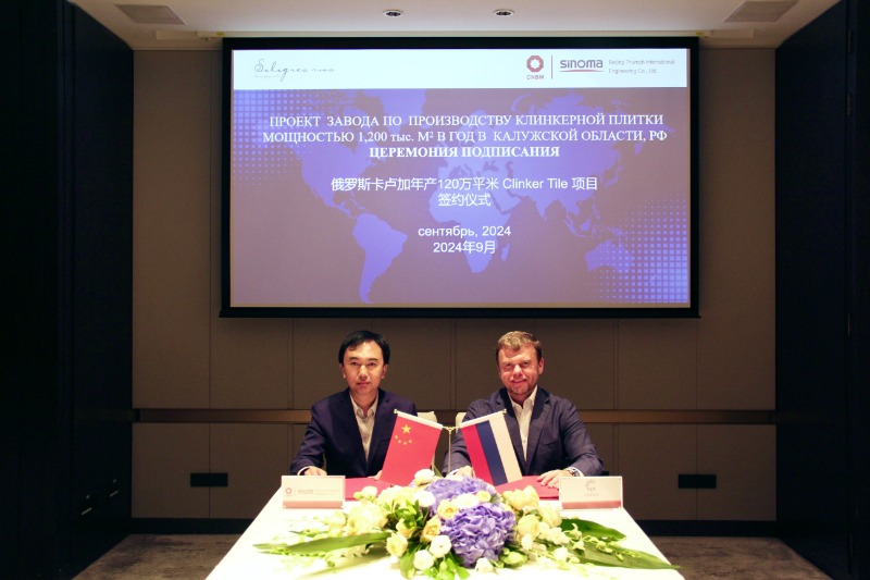 金秋送爽,喜迎華誕。9月27日,北京凱盛建材工程有限公司與俄羅斯Tochka Center集團簽訂俄羅斯年產120萬平米陶板項目EPS總承包合同和6000TPD熟料水泥項目EPC框架協議。北京凱盛黨總支書記、董事長李明與Tochka Center集團董事長Vladislav Melnikov代表雙方簽約。